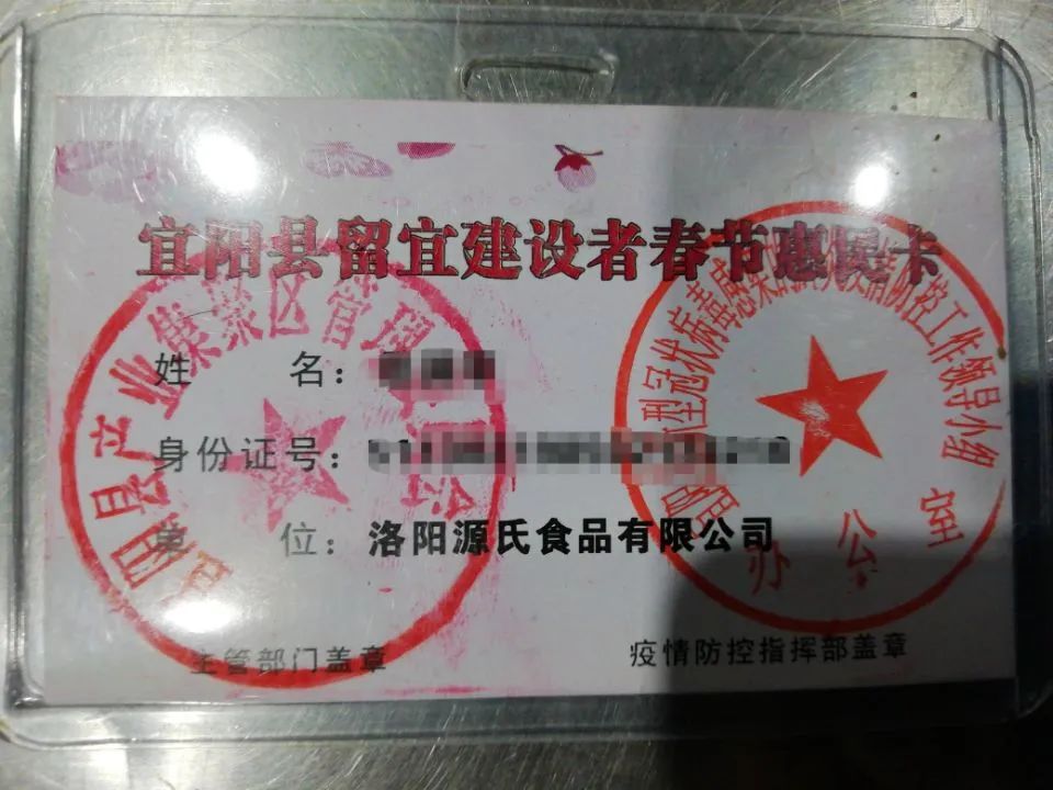园区领导为91视频在线看春节驻厂人员发放“宜阳县留宜建设者春节惠民卡”,在春节期间2021年2月1日—2021年2月28日期间,留宜人员可以免费乘坐县内公交、免费游玩县内任何旅游景点,县区内的图书馆、城市书屋、文化馆等为留宜人员正常开放。