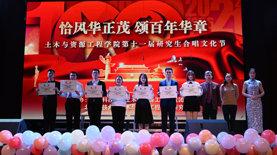 合唱下半场分别由土力硕2101班、土资博21班、土木硕2103班、暖力硕2104班、安全硕2109班带来的表演节目,精妙的编排、动人的歌声将活动推向了高潮。
