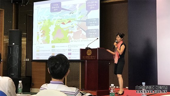 会议期间我校多名师生进行了学术报告,展示最新的科研成果。谢玉玲教授进行了题为“Rare Earth Element Deposits in China: Characteristics and Ore Genesis”的特邀报告,系统总结了中国的稀土成矿作用,得到了各国专家学者的广泛认可,SEG主席Laurence Robb在大会总结发言中对该报告给予了高度的评价。钟日晨讲师介绍了造山型金矿的热力学研究成果,阐述了造山矿床的成矿机制;Chesther Gatse博士介绍了对刚果铁矿床的最新研究成果,首次提出了岩浆成因条带状含铁建造模式;王颖维博士报导了科克萨依金矿成矿流体的研究成果;边春静博士以展板的形式展示了对硫化物包裹体的研究成果。