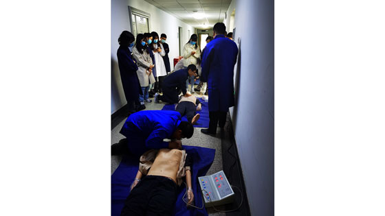 本次应急预案演练是模拟研究生张某(心肺复苏模拟人,以下简称模拟人)在实验操作中,吸入有毒气体,昏倒在地。事故发生后,实验室其他同学第一时间上报实验室负责教师,同时救出模拟人。