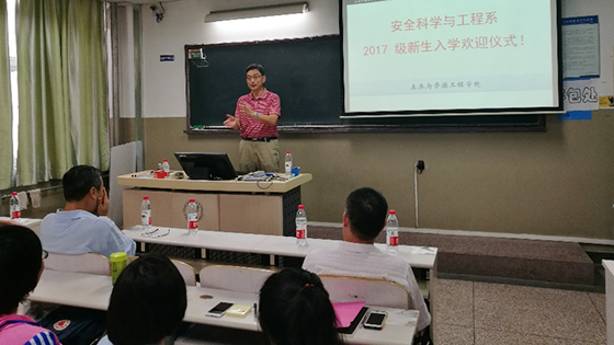 此次迎新大会由安全科学与工程系书记黄国忠老师主持。首先由系主任张英华教授上台致辞,张老师对各位新生表达了热烈的欢迎,对安全科学与工程系的师资力量、科研水准和人才培养情况等做了详细介绍,表达了安全系老师们对同学们赋予的爱心和责任,并向在座各位新生提出了对于他们大学生活的美好期许。