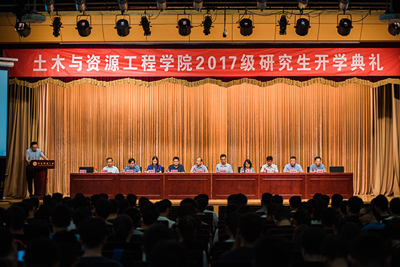 9月10日下午,4556银河国际在线2017级研究生开学典礼在校教工礼堂隆重举行。学院院长金龙哲、学院党委书记纪洪广、副院长李长洪、耿倩男,学院各系所主任、书记、教师代表及300余名研究生新生参加了开学典礼。典礼由学院党委副书记邓波主持。