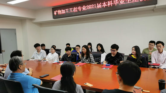 2021年6月25日下午,4556银河国际在线矿物加工工程系2021届本科毕业生座谈会在土木楼214会议室举行,矿物加工工程系主任孙春宝、系书记李正要、系副主任傅平丰、寇珏,以及胡文韬、张瑞洋、常志勇、李东、李根壮几位教师代表以及矿物加工工程系全体本科毕业生出席此次活动。活动由矿物加工工程系书记李正要主持。