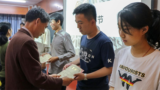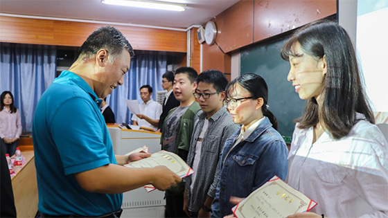 紧接着,由黄国忠书记宣读易元奖学金获奖名单,依次由张英华教授、杜翠凤教授、贾水库教授、蒋仲安教授、张甜副处长、黄国忠书记、王宏升先生颁发奖学金。