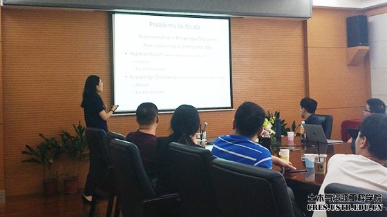 首先,Prof. Xiangliang Zhang对阿卜杜拉国王科技大学的整体情况进行了简单的介绍。之后,Prof. Xiangliang Zhang就 “大规模流数据挖掘”的主题,与同学们进行了深入的交流。她通过几个实际的项目,详细地介绍了如何应用机器学习来进行数据的挖掘与分析。同学们在与Prof. Xiangliang Zhang的积极互动中,收获颇深。