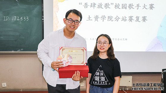 随后,土资学院学生会副主席王彬泽、第十九届校园歌手大赛冠军刘念慈、季军王毅达分别为三人颁奖。